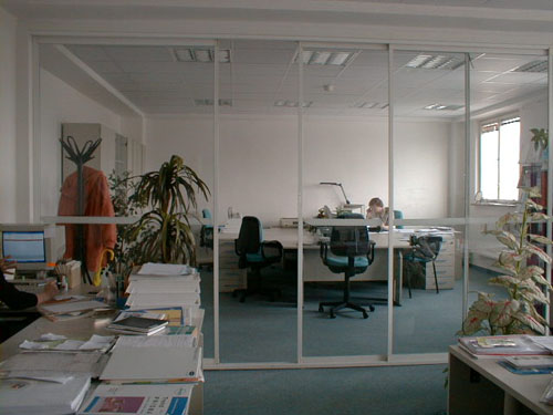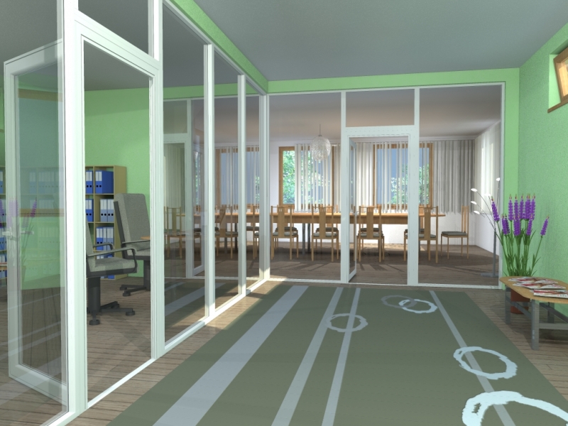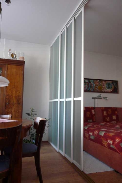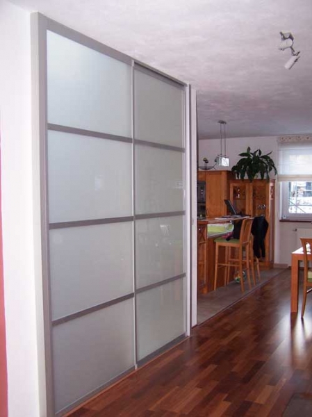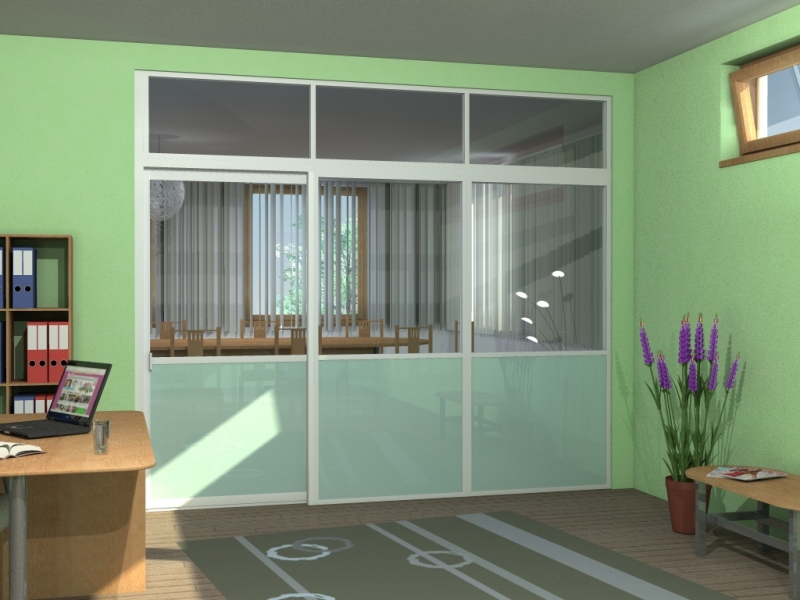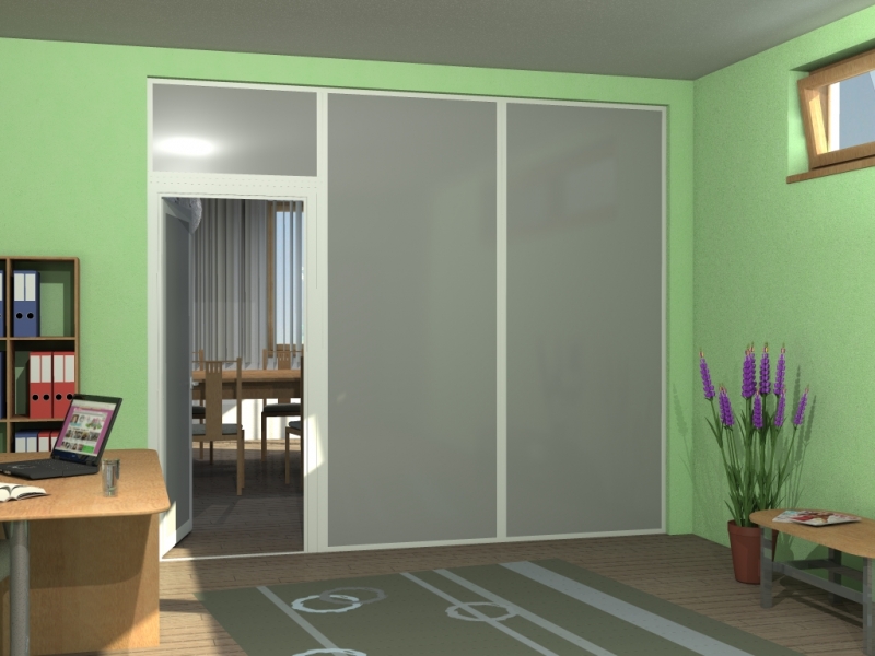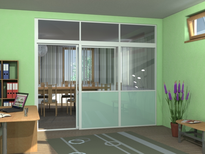 The AluPlus, AluCombi and AluFlexi – framed systems can be used for partitioning interior spaces in houses, flats or offices. Installation is easy, dust-free and not very time-consuming. The walls can be fixed, sliding or a combination of both. The various types of panelling and a wide range of designs, along with the possibility of colour painting of the aluminium profiles, make these systems suitable in any type of space.