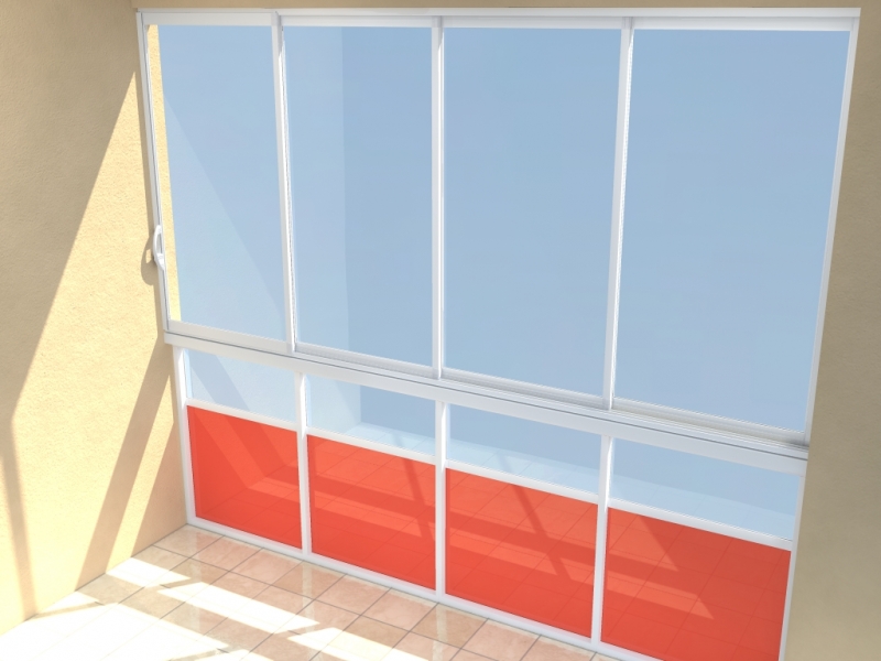 The windows slide over each other, so that a 5-part version achieves the opening of up to 4/5 of the glazed area. The panel is fitted in the aluminium frame, which runs along top (guiding) and bottom (supporting) rails. You can choose from a wide range of panels. The system can be fitted with glass or double-insulated glass of varying thicknesses.